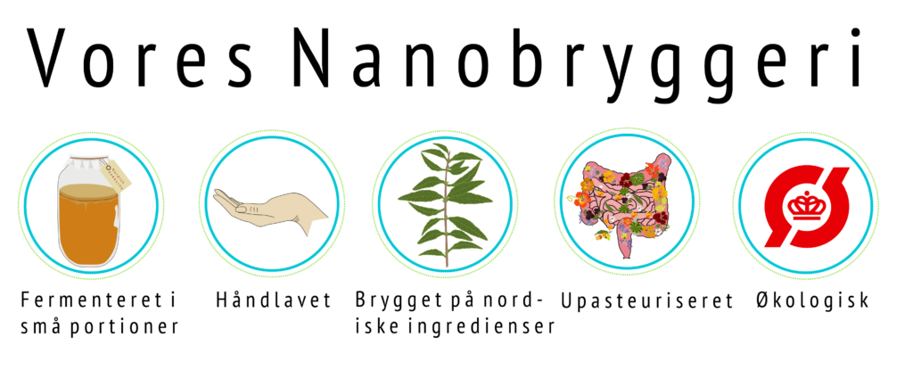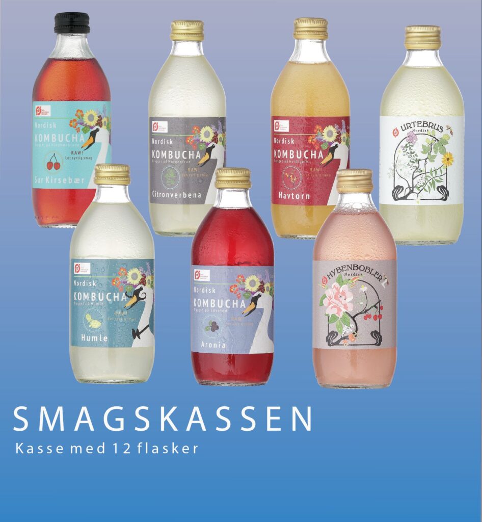 På vores mikrobryggeri er vores fornemmeste opgave at brygge “nordisk natur på flaske”. Vores serie består af håndbrygget økologisk kombucha, Urtebrus og Hybenbobler. Alt er brygget på urter, bær og blomster som kan gro i norden. Hvad du finder i vores flasker, vil du ofte kunne finde i den traditionelle bedstemorhave. Økologisk, naturligvis.