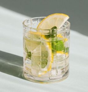 - Fyld masser isterninger og en appelsinskive i et glas